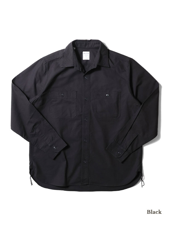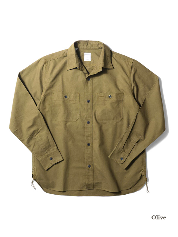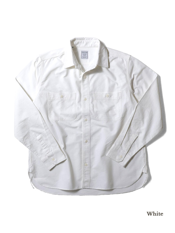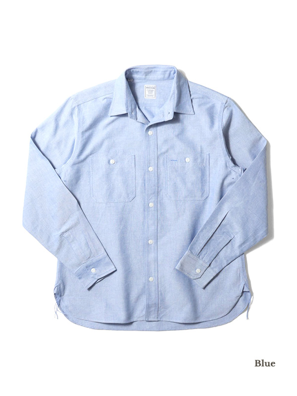 USコットンライクの硬く乾いた質感のオックスフォード生地を使用した長袖のワークシャツ。