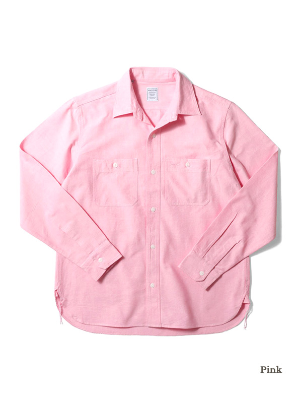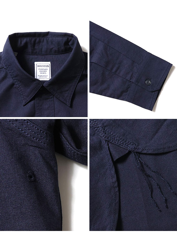 HOUSTON OXFORD LS WORK SHIRT ヒューストン オックスフォード 長袖 ワーク シャツ 【HOUSTON(ヒューストン)】 日本で初めてオリジナルのフライトジャケットを生みだしその後も数々の日本製ミリタリーアイテムや 古き良きアメリカの空気感を反映させたコレクションを展開する「ヒューストン」。 1点1点すべてのアイテムにおいて、素材、加工、リペアなど、細部にまでこだわって完成させています。 古き良き時代が香るウェアの数々にぜひご注目ください。 USコットンライクの硬く乾いた質感のオックスフォード生地を使用した長袖のワークシャツ。 巻き3本針縫製やネコ目ボタンを採用し、ヴィンテージライクに仕上がっている。 経糸に白糸を使用したシャンブレータイプ(BL,PK)と、生地染めの無地タイプ(WH,OL,NV,BK)の2種展開。 | |||||||||||||||||||||||||
