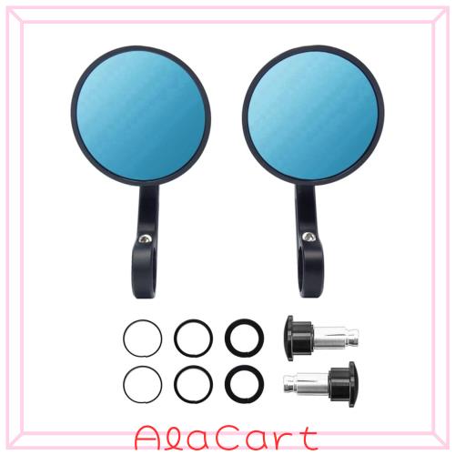 ELIFEPARTS バイク バーエンドミラー バイクミラー CNCミラー 適合 MT-07 MT-09 GROM Z1000 GSX-S1000F 汎用 軽量 丸型 防眩ブルー鏡