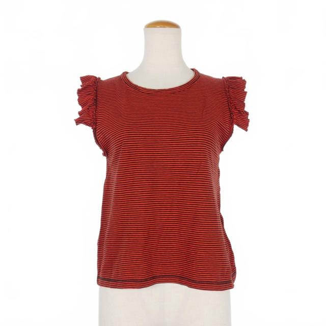 【中古】ゴールデングース GOLDEN GOOSE ボーダー フリル カットソー トップス タンクトップ ノースリーブ S レッド