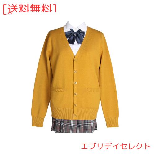 [Blostirno] スクールカーディガン 女子 制服 カーディガン 学生 厚手 無地 Vネック ゆったり 通学 イエロー(JP0027YE-S)