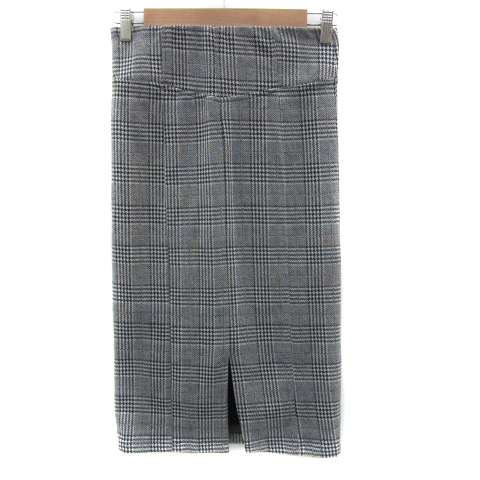 【中古】ロイヤルパーティー LABEL タイトスカート ミモレ丈 グレンチェック柄 スリット F グレー レディース