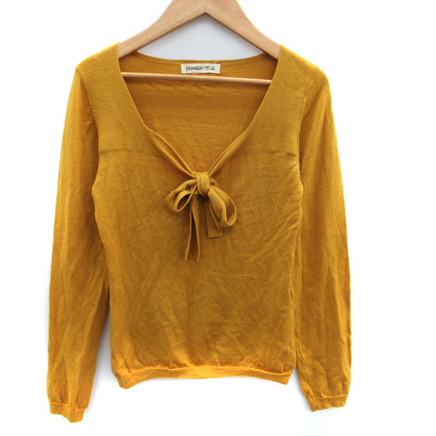 【中古】ストロベリーフィールズ ニット カットソー 長袖 ボウタイ ウール マスタードイエロー レディース
