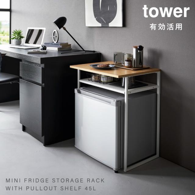 引き出し付き冷蔵庫上ラック 45L用 タワー 山崎実業 tower 小型冷蔵庫 ラック 冷蔵庫上ラック 棚 冷蔵庫 小型 おしゃれ モノトーン ホワイト ブラック 1487 1488 メーカー直送