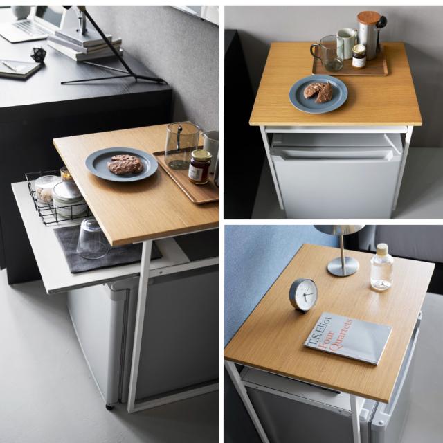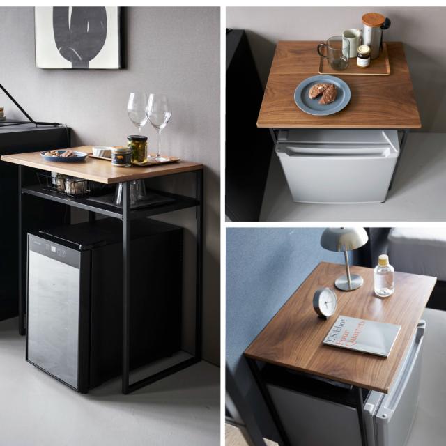 デッドスペースになりがちな小型冷蔵庫や小型のワインセラーの上を有効活用できます。