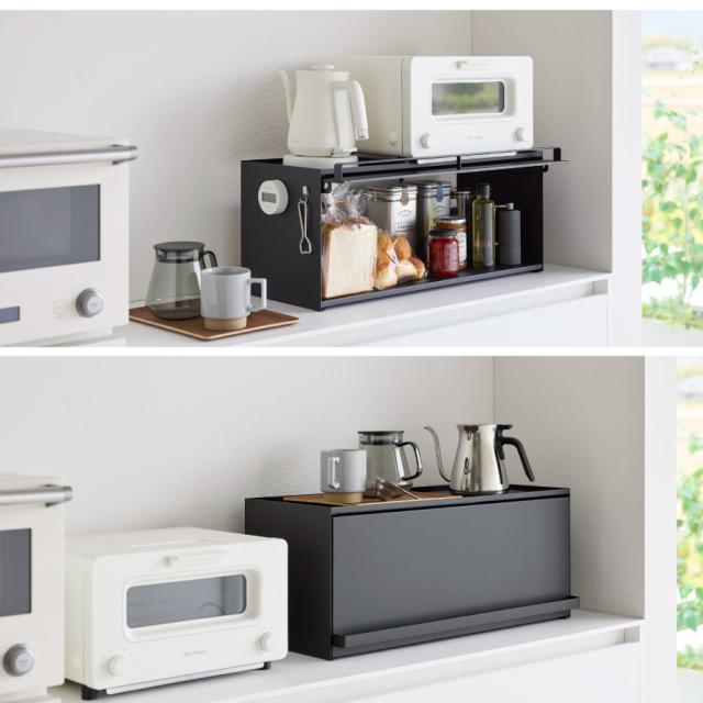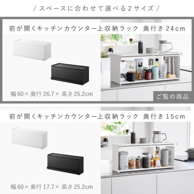 前が開くキッチンカウンター上収納ラック D24 タワー 山崎実業 tower カウンター上収納 ラック カウンター上 キッチン 収納 両面開閉 おしゃれ モノトーン ホワイト ブラック 1454 1455 メーカー直送