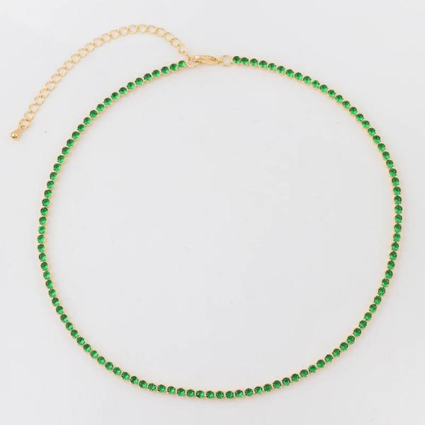 女性のためのカラフルなネックレス テニス キュービックジルコニア ジルコニア ピンク ホワイト グリーン ゴールド ラインa 5mm