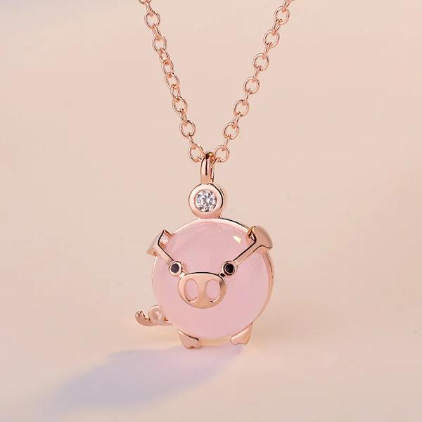 Foydjew-女性用の金メッキピンククリスタルのネックレス かわいい ピンクのペンダント