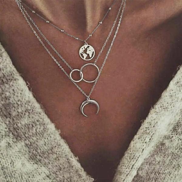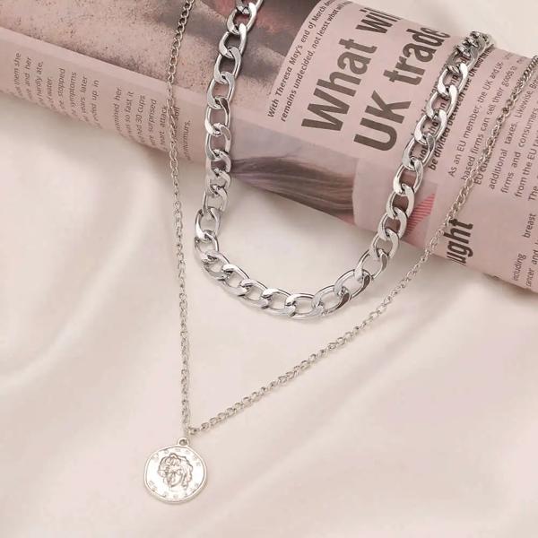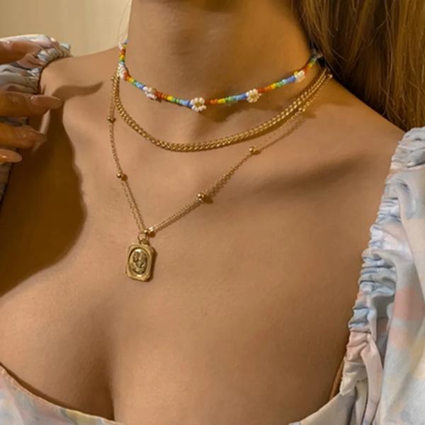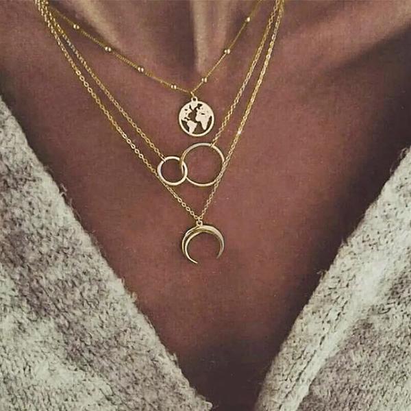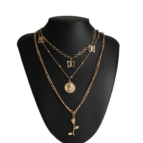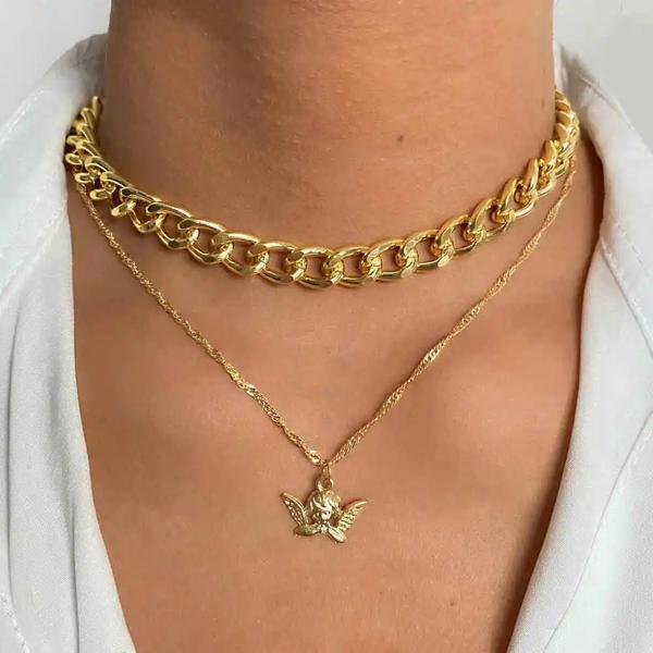 Kiss妻-ネックレスマルチレイヤーゴールデンチェーン 女性用 コイン 天使 バラの花 ペンダント ファッションジュエリー