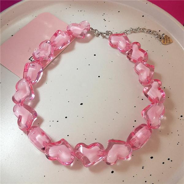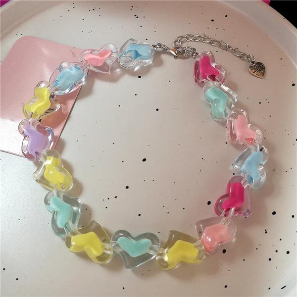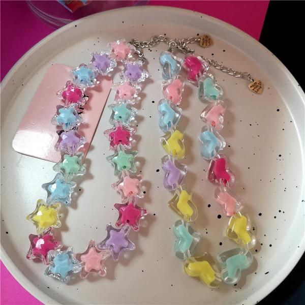 Kpopビーズチョーカーネックレス 原宿 ピンク パープル キャンディー アクリル ハート スター egirl goth emo y2k 2000s ヴィンテージ木工アクセサリー