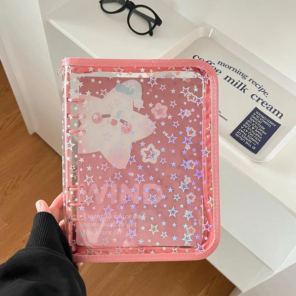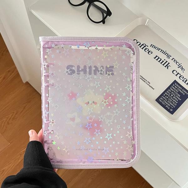 A5 Glitter star kpopバインダー 写真カードコレクションブック フォトアルバムカードホルダー 学校 オフィス 文房具 3インチ