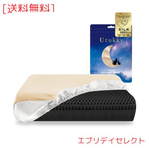 Utukky シルク 枕カバー 伸縮式【TVで紹介】片面100%シルク 枕カバー 洗える シルク枕カバー 43×63cm 幅広いサイズ対応可 瞬間脱着 寝癖