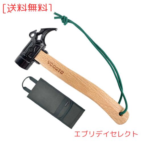 【YOGOTO】 ペグハンマー 木材 安全 ベルト付 収納ケース付 (第2世代+防水帆布ケース(オリーブ色))