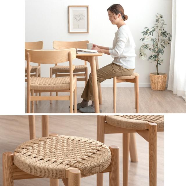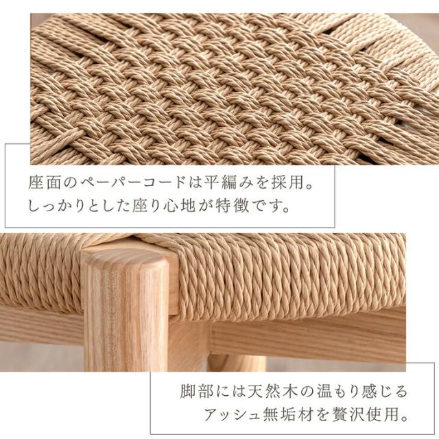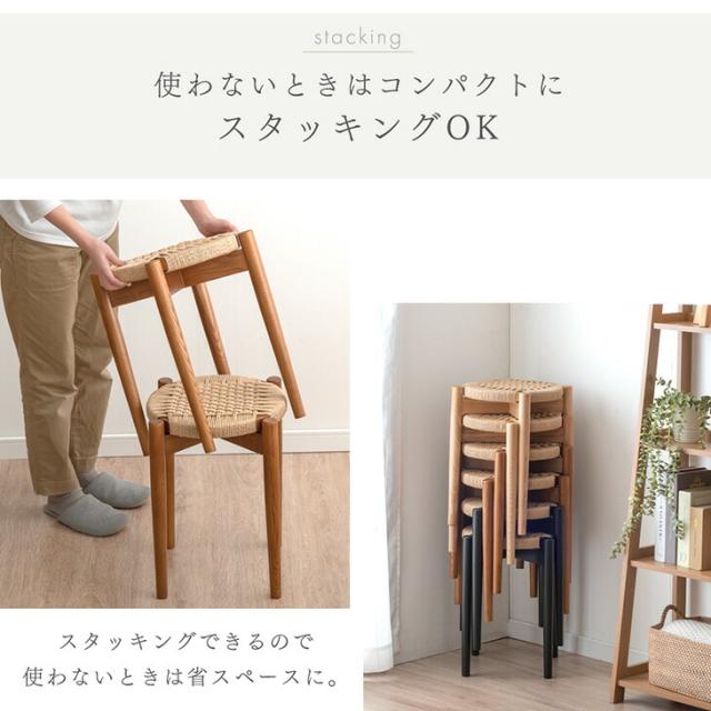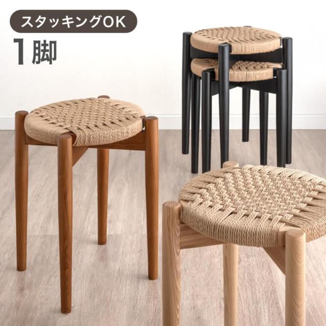 【正午〜P5%還元】 天然木アッシュ スツール 1脚 完成品 ペーパーコード スタッキング スタッキングチェア スタッキングスツール 食卓椅子 ダイニングチェア チェア 椅子 いす イス 木製 木目 天然木 丸型 円形 カフェ ダイニング