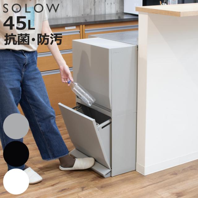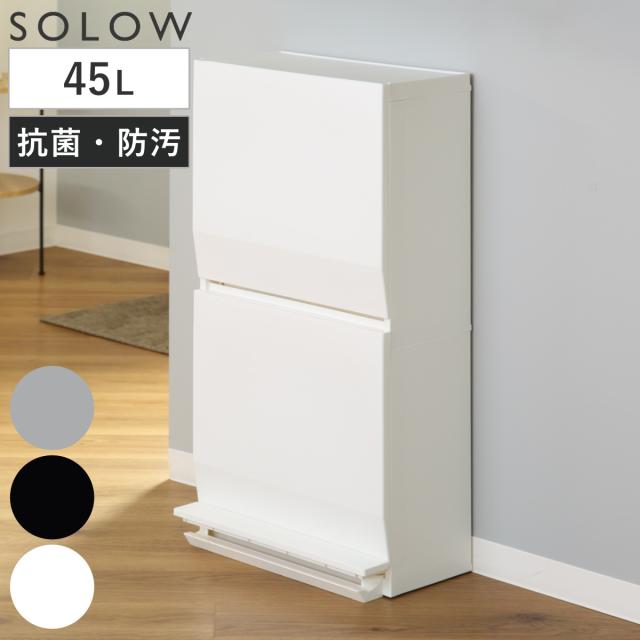 ゴミ箱 SOLOW 通路で使えるペダル分別ストッカー 45L 2段 ( ごみ箱 45リットル ソロウ ペダル式 フラップ式 ふた付き 分別 キャスター付き スリム 幅45 キッチン 角型 ホワイト ブラック シンプル おしゃれ )