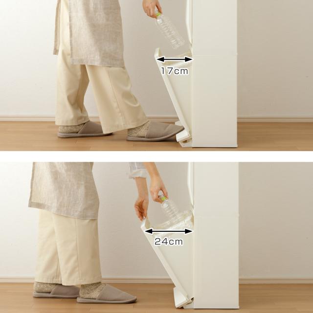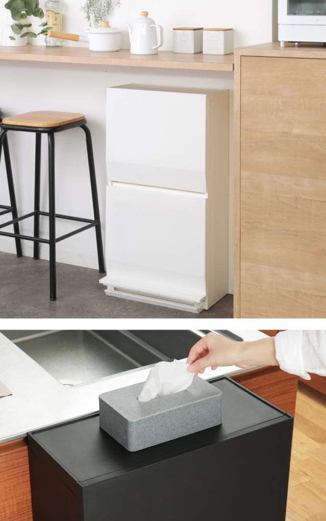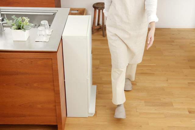 キッチンサイドや廊下、リビングなどのちょっとしたスペースに。奥行たったの26.5cmとスリム設計なので、生活動線をしっかり確保できます。すぐ手の届くところに置ける、だけど邪魔にならないゴミ箱です。
