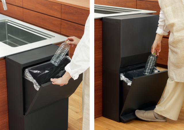 上段はフラップ(手動)式、下段はペダル式なのでかがまず開閉できます。