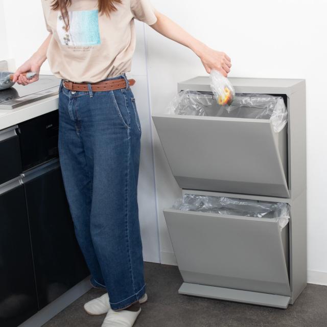 「SOLOW」通路に置ける薄いゴミ箱 45L(各段22.5L)