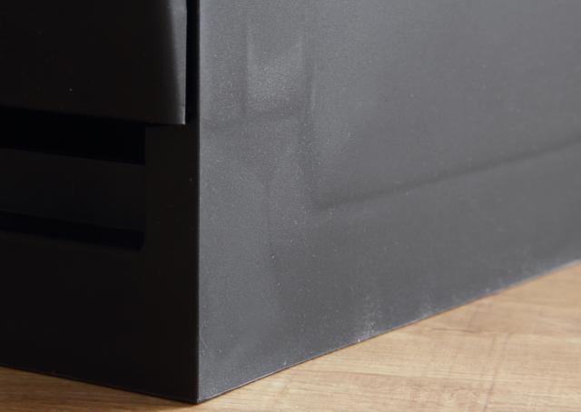 カウンター下に置いたまま捨てることができ、上に物を置くこともできます。置いた物が落下しにくいフチ付きの天板です。