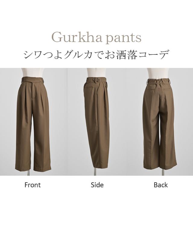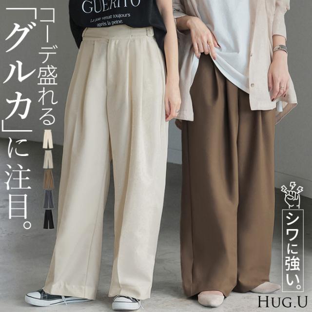 パンツ ワイド グルカ レディース ボトムス ボトム ロング ロングパンツ 体型カバー ボトムス ボトム ストレート ズボン ゆったり ハイウエスト シワになりにくい 無地 速乾性 タック きれいめ オフィスカジュアル 大きいサイズ 黒 白 秋 冬 HUG.U 秋新作