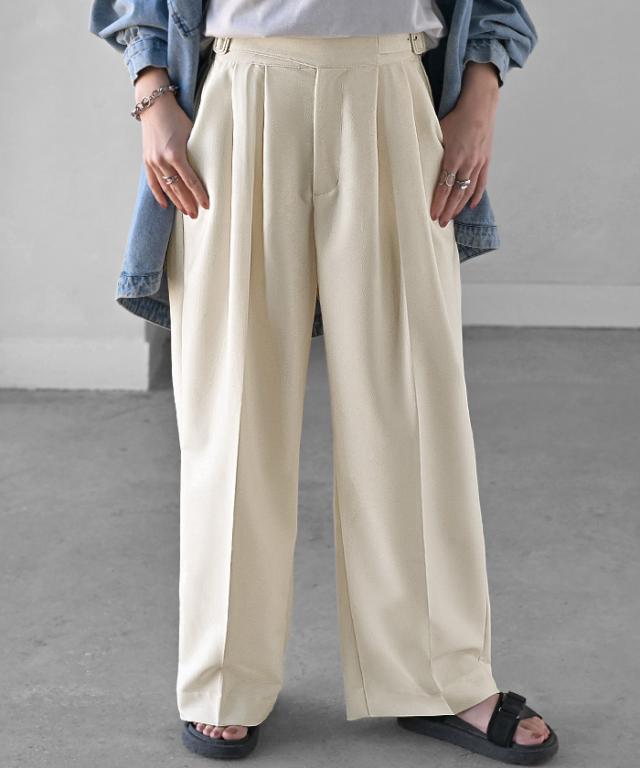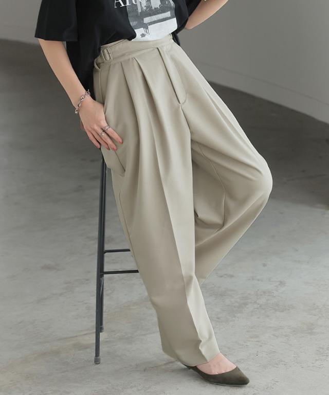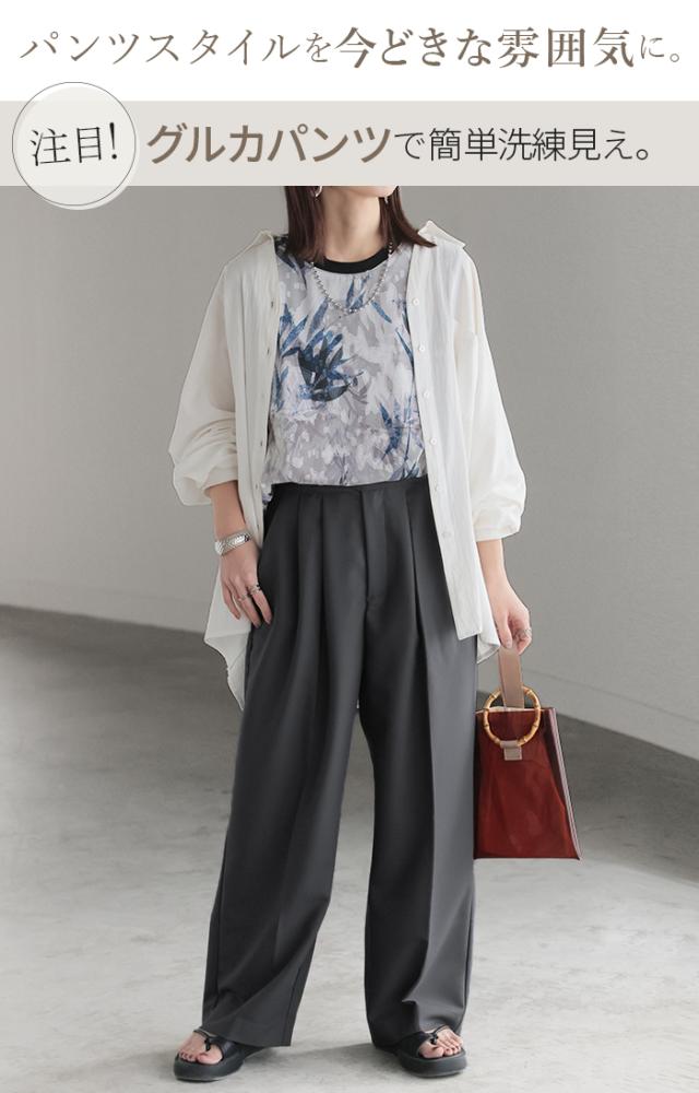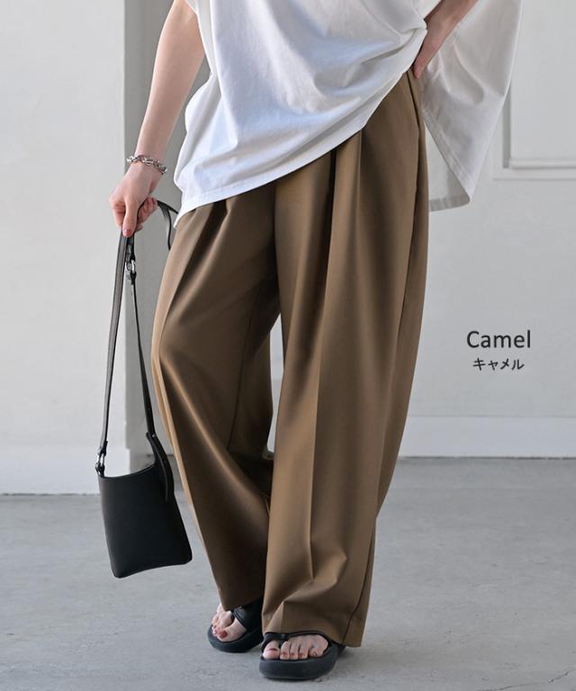 ツータックデザインが特徴で綺麗目な見た目をキープしつつ上品な印象に。