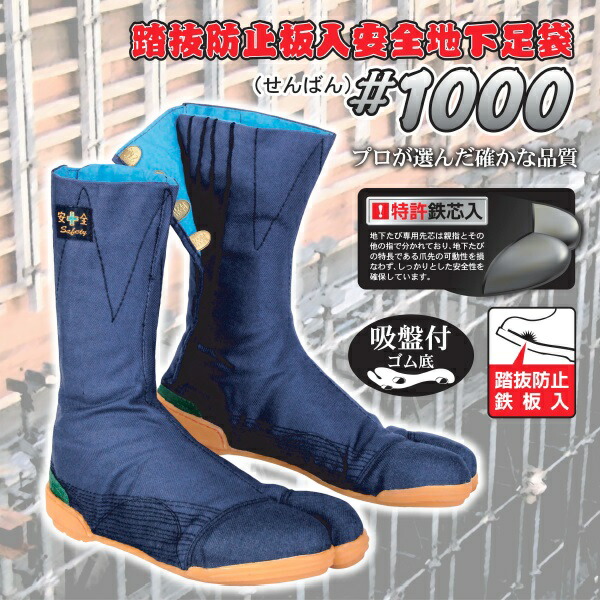 ・高所適応安全たび 1000番 大ハゼ8枚 踏抜防止板入