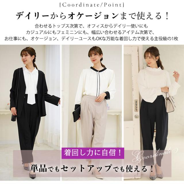 ■着用感:ちょうどいい、■着丈:ヒップ半分、■バスト:-、■腕回り:-、■袖口:-、■袖丈:-、首回り-、■ウエスト:ちょうどいい、■ヒップ:ちょうどいい、■太もも:ちょうどいい ●脚長効果が高く嬉しいです。とっても綺麗なシルエットで気に入りました。