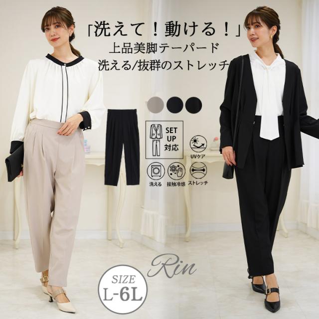 新作 大きいサイズ レディース パンツ | Rin 洗える! 動きやすい! ストレッチツイル タック テーパードパンツ [861610] LL 3L 4L 5L 6L