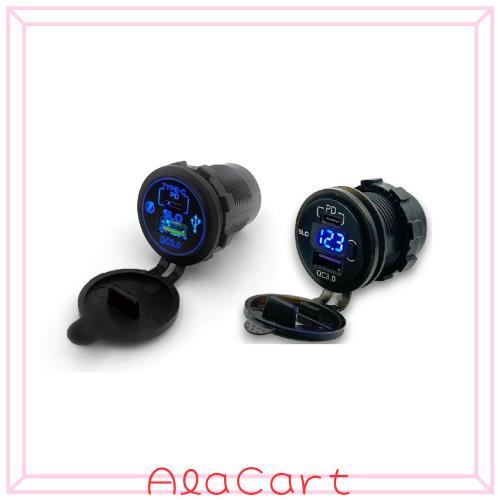 バイク用 チャージャー USB充電器 12V-24Vの車種に対応 充電出力 PD+QC3.0対応。
