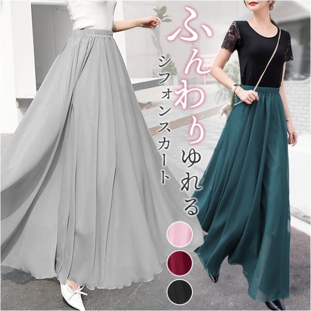 シフォンスカート ロング レディース 通販 チュールスカート レディーススカート ロングスカート スカート フレアスカート フレア ギャザー ロング丈 マキシ ウエストゴム きれいめ
