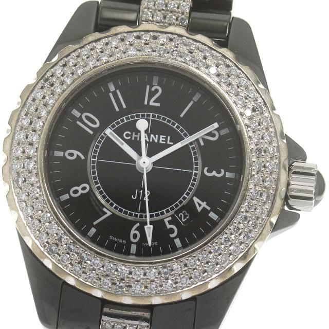 シャネル CHANEL H1338 J12 黒セラミック デイト ダイヤベゼル クォーツ レディース _846696