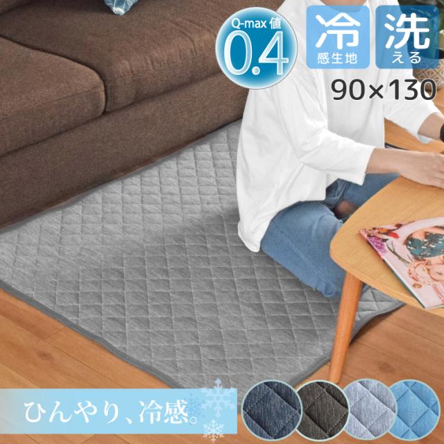 ラグ 洗える ラグマット カーペット 小さめ 夏用 夏 約90×130cm 冷感 ひんやり 接触冷感 キルトラグ ウォッシャブル クールラグ コンパクト 春夏 おしゃれ Q-MAX 杢調 無地 ジーナ