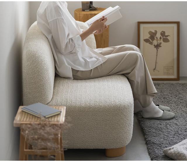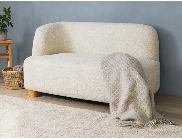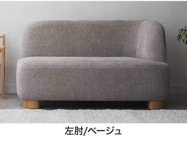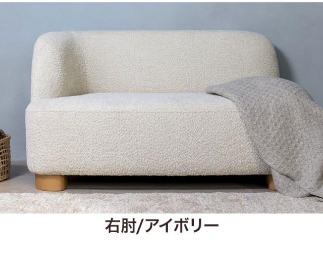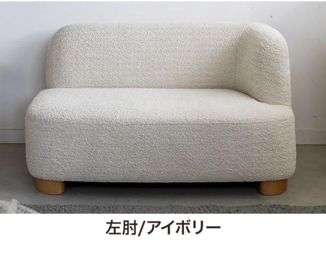 アームソファ 北欧風 木脚 天然木 アジャスター付き ブークレ生地 ローソファ 肘掛け ソファ 韓国インテリア 一人暮らし ワンルーム リビング 新生活 右肘 左肘 ソファー 幅115cm 脚 取り外し