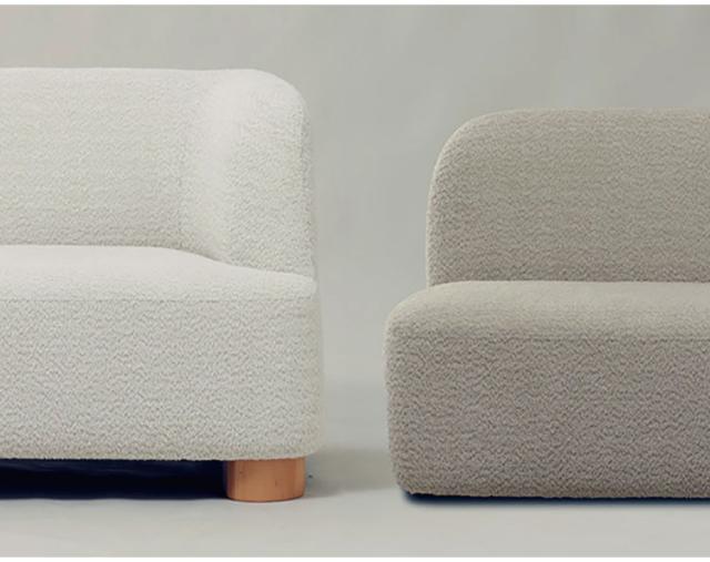 ループした糸で立体感あるブークレ生地を使用。モコモコした肌触りで、優しく温かみのある印象に仕上げています。