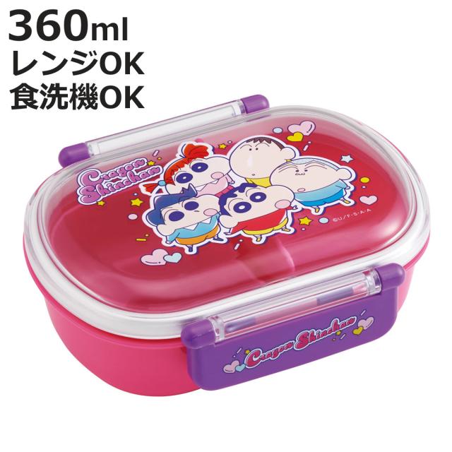 弁当箱 1段 360ml 抗菌ふわっとタイトランチ クレしん25 ( クレヨンしんちゃん ランチボックス 食洗機対応 レンジ対応 抗菌 日本製 ドーム蓋 キッズ 子供 食洗機OK レンジOK お弁当 弁当 一段 2点ロック 銀 AG 抗菌加工 )