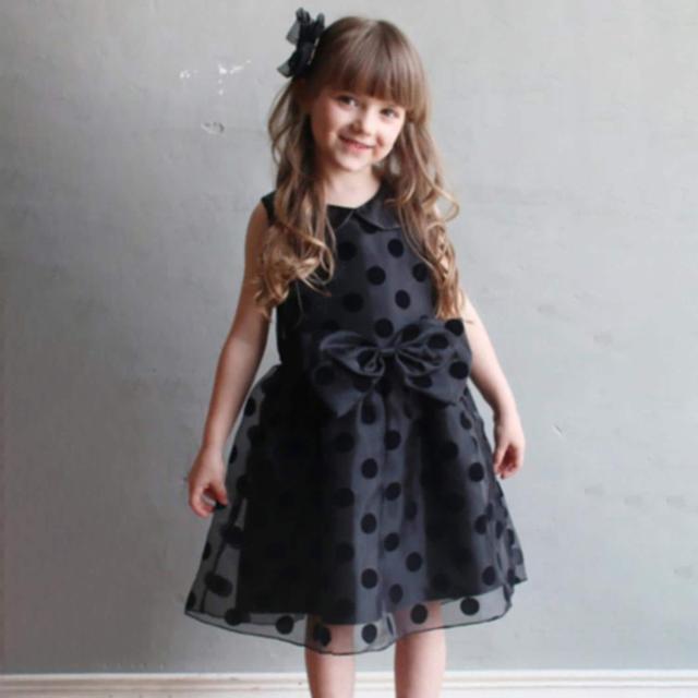 ★STAFFCOMMENT★スタッフの子供が着用してみました♪ーーーーーーーーーーーーーーーーーーー【サイズ感】 ・6歳/118cm19kg/普通型/普段サイズ:120cm ・120cm丁度良い ・9歳/131cm32kg/ぽっちゃり体型/普段サイズ:140cm ・140cm丁度良い ・150cm少し大きめ 【透け感】裏地がある為、透け感はありません。【着心地・素材感】素材が軽い為、着用していても涼しい。ジャストサイズの着用が、形が崩れず綺麗。ーーーーーーーーーーーーーーーーーーー■商品説明 海外映画からそのまま飛び出してきたようなレトロモダンな大粒ドットのドレスワンピース。プレッピーな雰囲気の丸襟は、あえて幼さの残るピーターパンカラー。シンプルな前身頃から一転、大きなリボンを真ん中に配し、スカートは美しくふわりと広がるシルエットに仕立てました。大きな水玉模様は透け感のあるシフォンチュールと合わせることで上品なニュアンスとレトロモダンな個性を両立させ、今が一番可愛いお嬢さまの特別な一日を全方位から引き立てます。視界に入れば誰もが一度は振り返ってしまう、女優さんのような装いではれの日を彩ります。結婚式、七五三、発表会、謝恩会、誕生日会、パーティーなどの様々なフォーマルシーンでご活用ください。■モデルサイズ (BLACK着用)Weight:18kg/Height:113cm (GOLD着用)Weight:17.3kg/Height:105cm ■モデル着用サイズ ・110cm