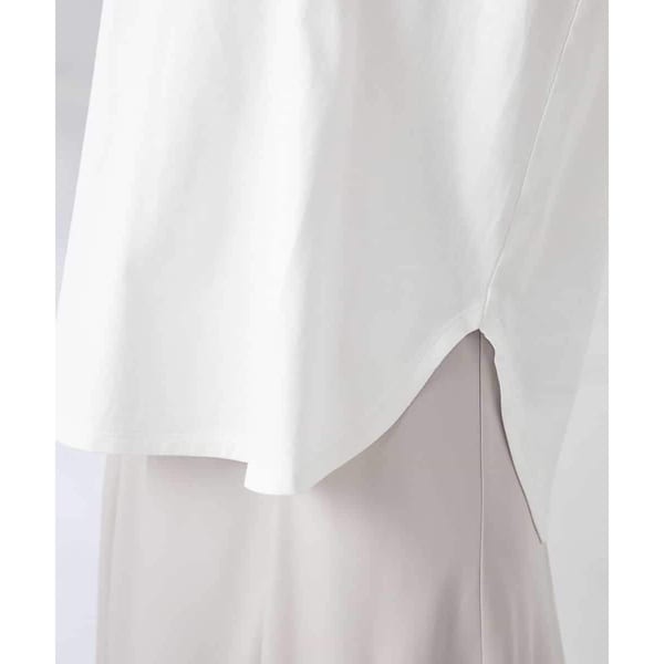 ・ラウンドヘムデザインでトップスアウトもサマになる着こなしに