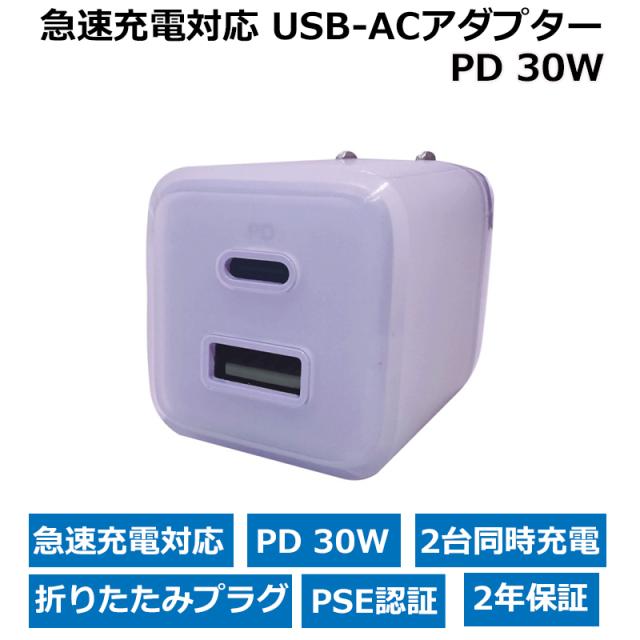 インプリンク PD対応 USB充電器 Sheerカラー Type-C 1ポート 30W パープル iPhone スマホ タブレット充電 USB ACアダプタ PSE対応 IMACHCL30PU 送料無料
