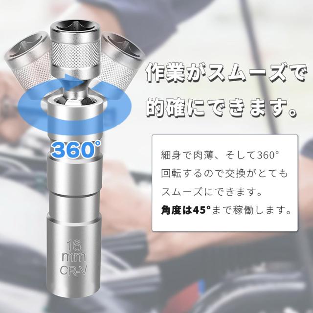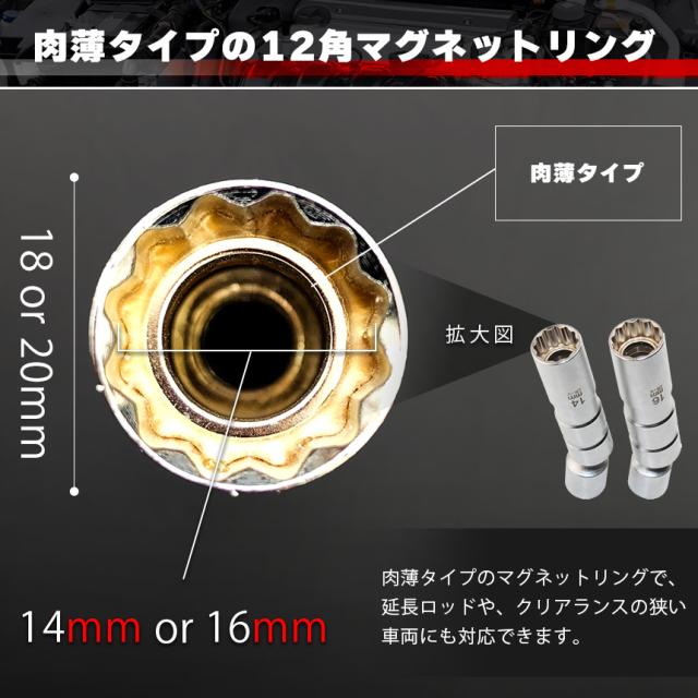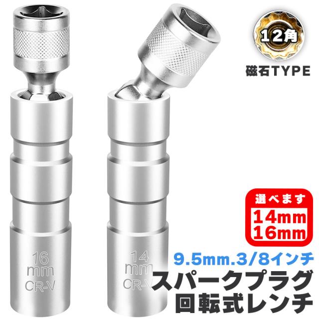 プラグレンチ 回転式 スパークプラグレンチ 14mm 16mm 選べる マグネット式 プラグレンチ 12角 3/8(9.5mm) 差込角 プラグソケット スパークプラグソケット 耐久性 クロムバナジウム鋼製 マグネット 自動車 バン 車 トラック