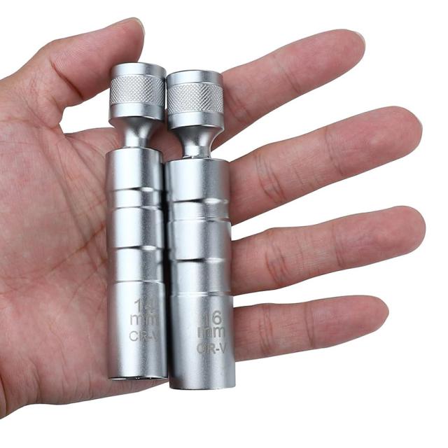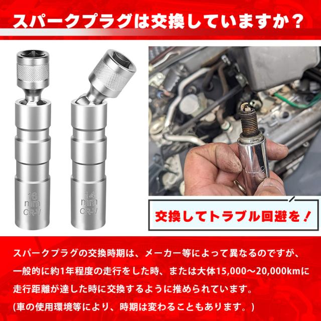 ◎スパークプラグ交換のためのソケット◎・回転式で便利!【特徴】耐摩耗性、耐食性に優れたクロムバナジウム鋼でできていて、丈夫で高品質です。耐久性もよくタフにご使用できます。またマグネットタイプなのでスパークプラグを固定できるので、安全に使え、作業がはかどります。肉薄設計で、クリアランスの狭めのお車でも作業できます。回転式ヘッドが作業効率をより上げてくれ、狭く届きにくい作業もOK!・1セット内容14mmまたは16mmタイプのソケットx1・サイズ14mm:約96x18mm、約98g16mm:約97x20mm、約111g