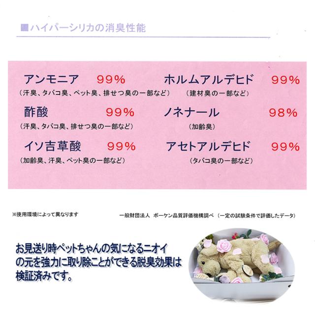 この骨壷専用のシリカゲルはシリカゲルの中でも消臭性能が高い「ハイパーシリカ」を使用しております。
