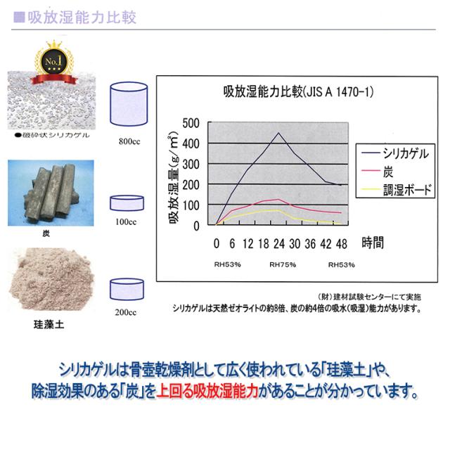 「ハイパーシリカ」は木炭の約8倍の吸湿力があります。