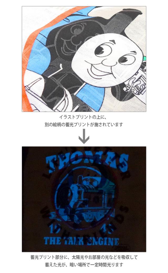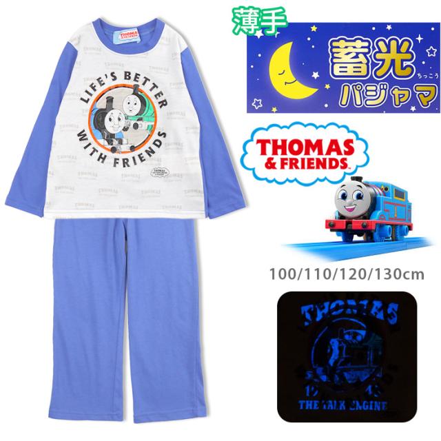 【メール便送料無料】きかんしゃトーマス 蓄光パジャマ 上下セットアップ キッズ ジュニア 春秋 100 110 120 130 ブルー 531TM1211 THOMAS 光るパジャマ 長袖 長ズボン ルームウエア 部屋着 プルオーバー 丸首 ロングパンツ 綿混 子供 男の子 ボーイズ キャラクター 青 9948