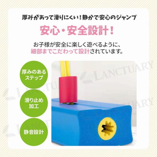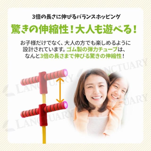 | 商品の説明 | バランスホッピングは、お子様の成長をサポートする、楽しくて安全な遊具です。ぴょんぴょん跳ねることで、自然とバランス感覚や運動能力が育まれ、体幹も鍛えられます。 カラフルなデザインと楽しいサウンドは、お子様の好奇心と感性を刺激し、遊びへの意欲を高めます。室内でも屋外でも遊べるので、天候に左右されず、いつでも元気いっぱい体を動かせます。 伸縮性のあるゴムチューブは、最大3倍の長さまで伸びるので、お子様の成長に合わせて長くお使いいただけます。また、大人の方でも楽しめるので、家族みんなで一緒に遊べます。 安全性にも配慮し、厚みのあるステップには滑り止め加工を施し、静音設計を採用しています。マンションやアパートでも、周囲を気にせず安心して遊べます。 握りやすいグリップは、柔らかな素材でできており、小さなお子様の手にも優しくフィットします。 バランスホッピングは、ただ跳ねるだけでなく、遊び方を工夫することで、さらに楽しみが広がります。 例えば障害物競走など、ルールを設けて遊ぶことで、競争心や協調性を育むことができます。また、音楽に合わせてジャンプしたり、ダンスを取り入れたりすることで、リズム感や表現力を養うこともできます。 バランスホッピングは、お子様の体力向上、バランス感覚の育成、感性を育み、親子間のコミュニケーションを促進するなど、様々なメリットをもたらします。 |