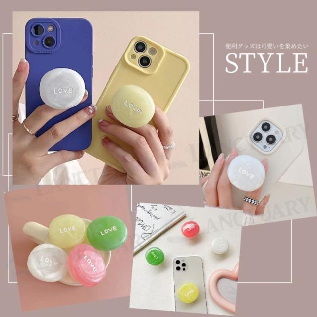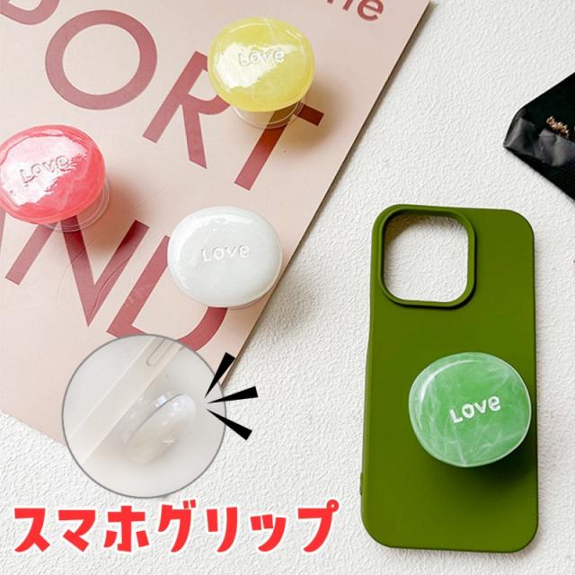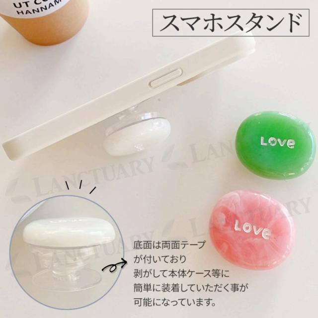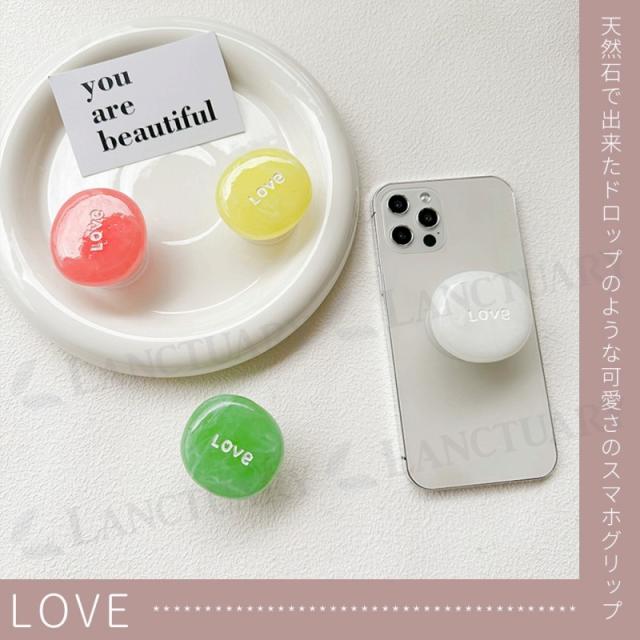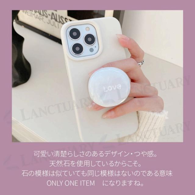 スマホグリップ 天然石 LOVE 可愛い スマホリング おしゃれ 落下防止 スマホホルダー スマートフォン 携帯スタンド アクセサリー ギフト 光沢 かわいい マーブル