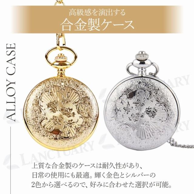 懐中時計 クラシックモダン チェーン付き シルバー ゴールド ユニセックス 簡易時刻調整 電池交換可 簡単取り付け ネックレス プレゼントおしゃれ かっこいい