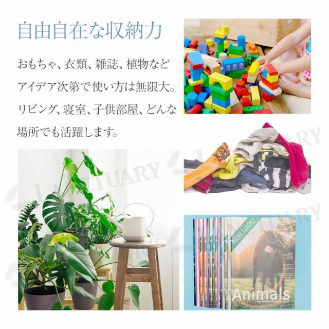 収納力も抜群で、A4ファイルや雑誌もすっぽり入ります。おもちゃや衣類など、かさばるものも収納できるので、お部屋をスッキリと整理整頓できます。