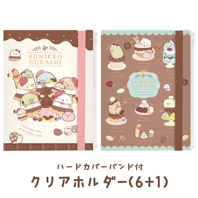 すみっコぐらし 喫茶すみっコでチョコレートフェアテーマ ハードカバーバンド付クリアホルダー(6+1ポケット) FA14303/FA14304