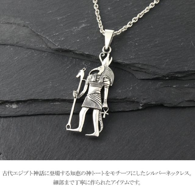 古代エジプト神話に登場する知恵の神トートをモチーフにしたシルバーネックレス。