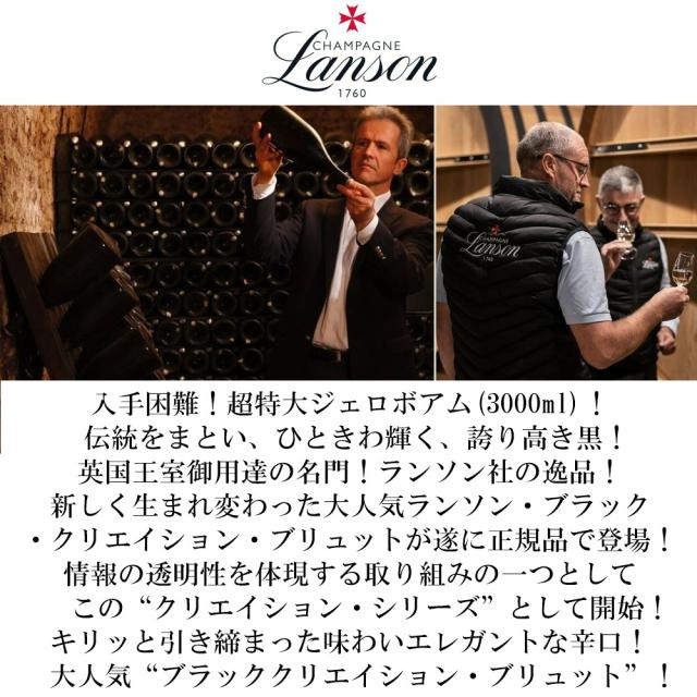【特大サイズ】シャンパーニュ ランソン ブラック クリエイション ブリュット 正規代理店輸入品 大型ジェロボアム(3000ml) 豪華木箱入り